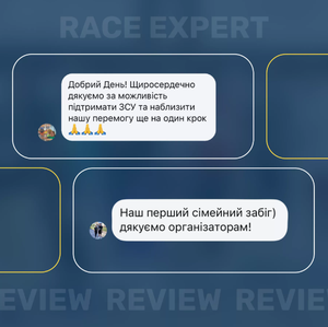 Якщо ви берете участь в офлайн-забігах, які організовує спільнота Race Expert спільно з ГО «Підтримка України», 100% прибутку спрямовується на благодійність.